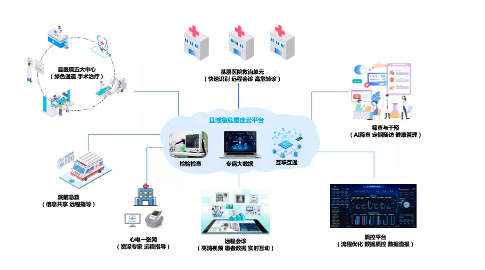 縣域醫(yī)院作為中國廣大縣域百姓看病就診的主要場所,承擔著我國近三分之二人口的疾病診療與健康管理重擔。由于急危重癥的救治時間窗較短,急危重癥患者多在縣級醫(yī)院就診,因而提升急危重癥患者的搶救能力是縣域醫(yī)院的工作重點!“千縣工程”縣醫(yī)院綜合能力提升工作方案(2021-2025年)》的一項重點任務就是推動資源整合共享,發(fā)揮縣醫(yī)院“龍頭”作用。同時發(fā)揮縣域醫(yī)療中心作用,緊密依托縣醫(yī)院重點建設這四個“五大中心”。