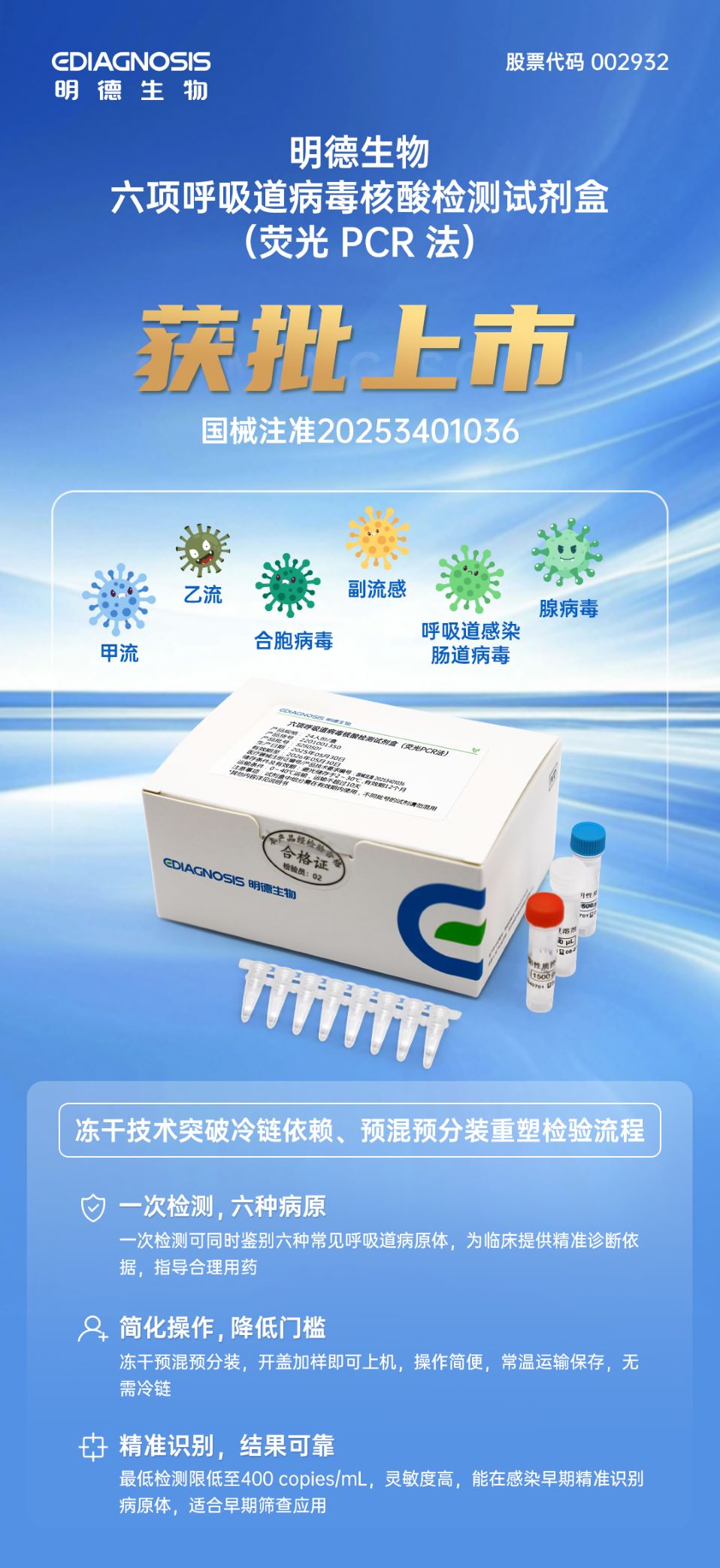 明德呼吸道六聯(lián)檢重磅上市——凍干技術(shù)突破冷鏈依賴、預(yù)混預(yù)分裝重塑檢驗(yàn)流程
