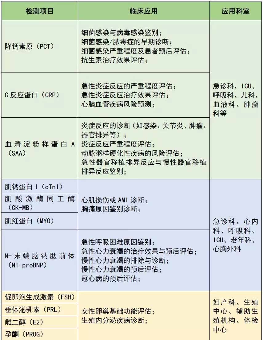 檢測(cè)項(xiàng)目涵蓋感染/炎癥疾病、心血管疾病等多種疾病標(biāo)志物檢測(cè)。