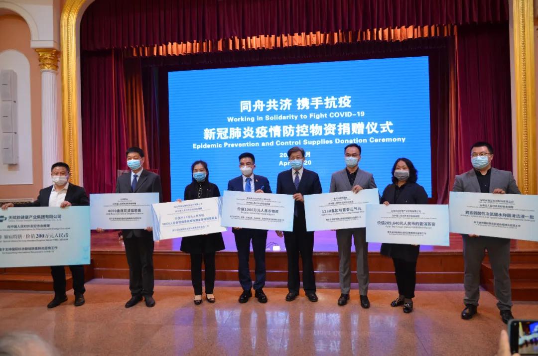 捐贈儀式上,中國人民對外友好協(xié)會感謝明德生物為摩洛哥抗議醫(yī)療物資提供的大力支持,當場頒發(fā)捐贈證書并合影留念。