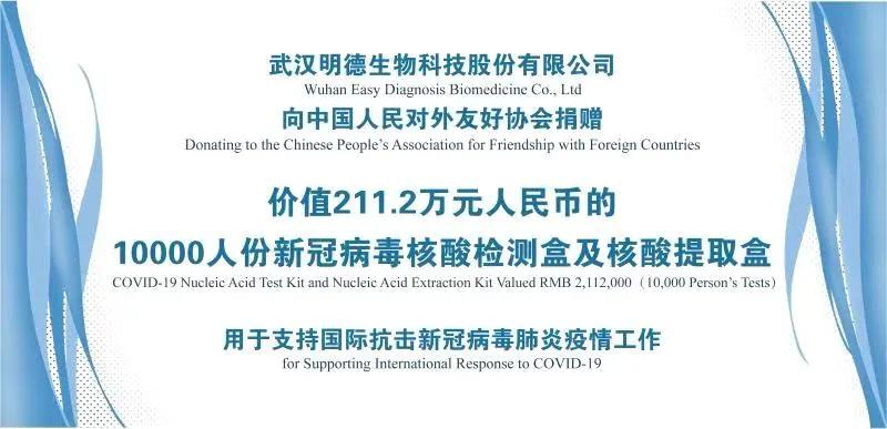 明德生物積極支持國內(nèi)外抗“疫”事業(yè),自1月起明德生物義不容辭向各醫(yī)療機構(gòu)多次累計捐贈核酸試劑、診斷儀器市值超過1000萬元人民幣。明德生物作為一家專業(yè)的IVD企業(yè)在國際疫情嚴峻時刻挺身而出,發(fā)揮全球化優(yōu)勢,參與國際抗“疫”援助,助力世界各地共同抗疫,共克時艱。相信中摩兩國人民緊密團結(jié),一定可以盡快戰(zhàn)勝疫情。