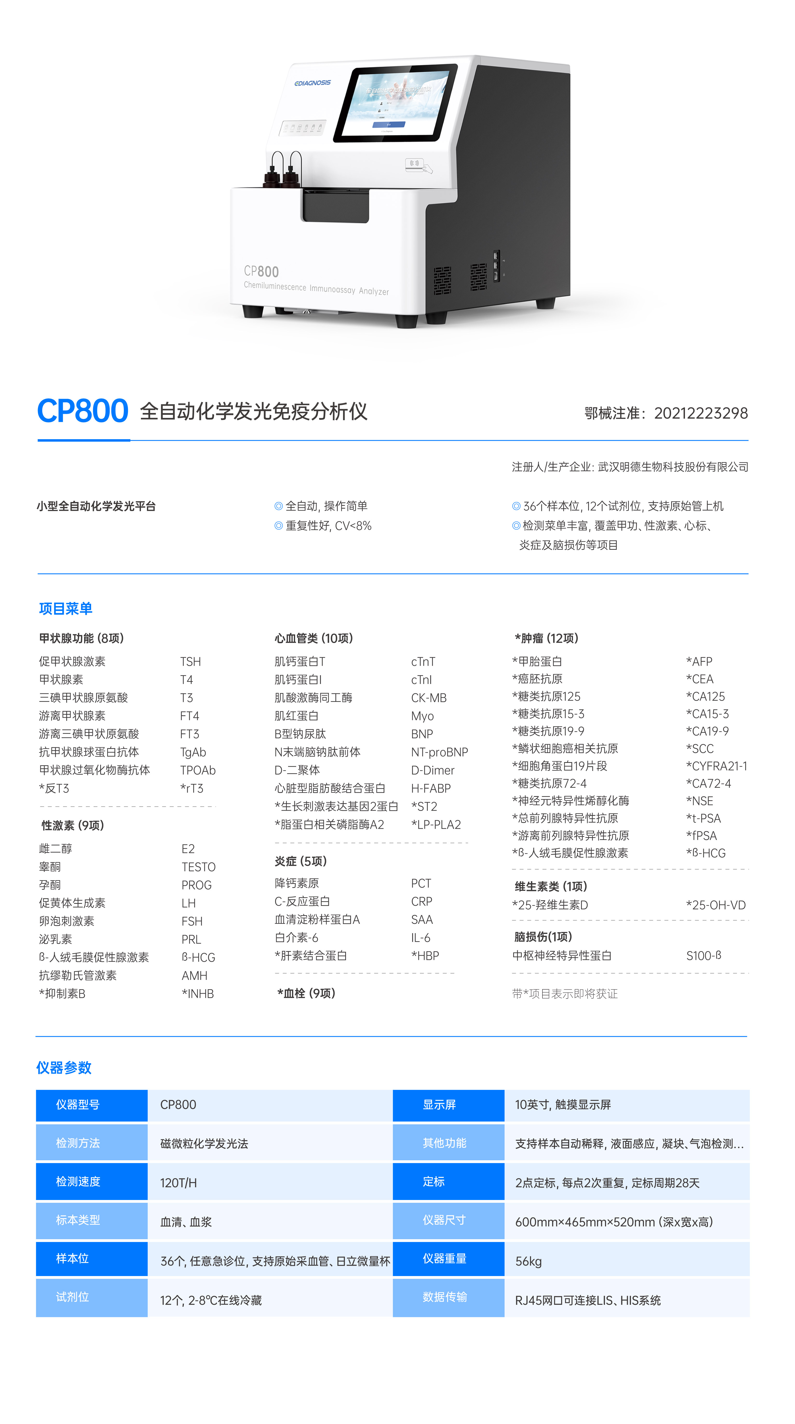 CP800 全自動化學(xué)發(fā)光免疫分析儀