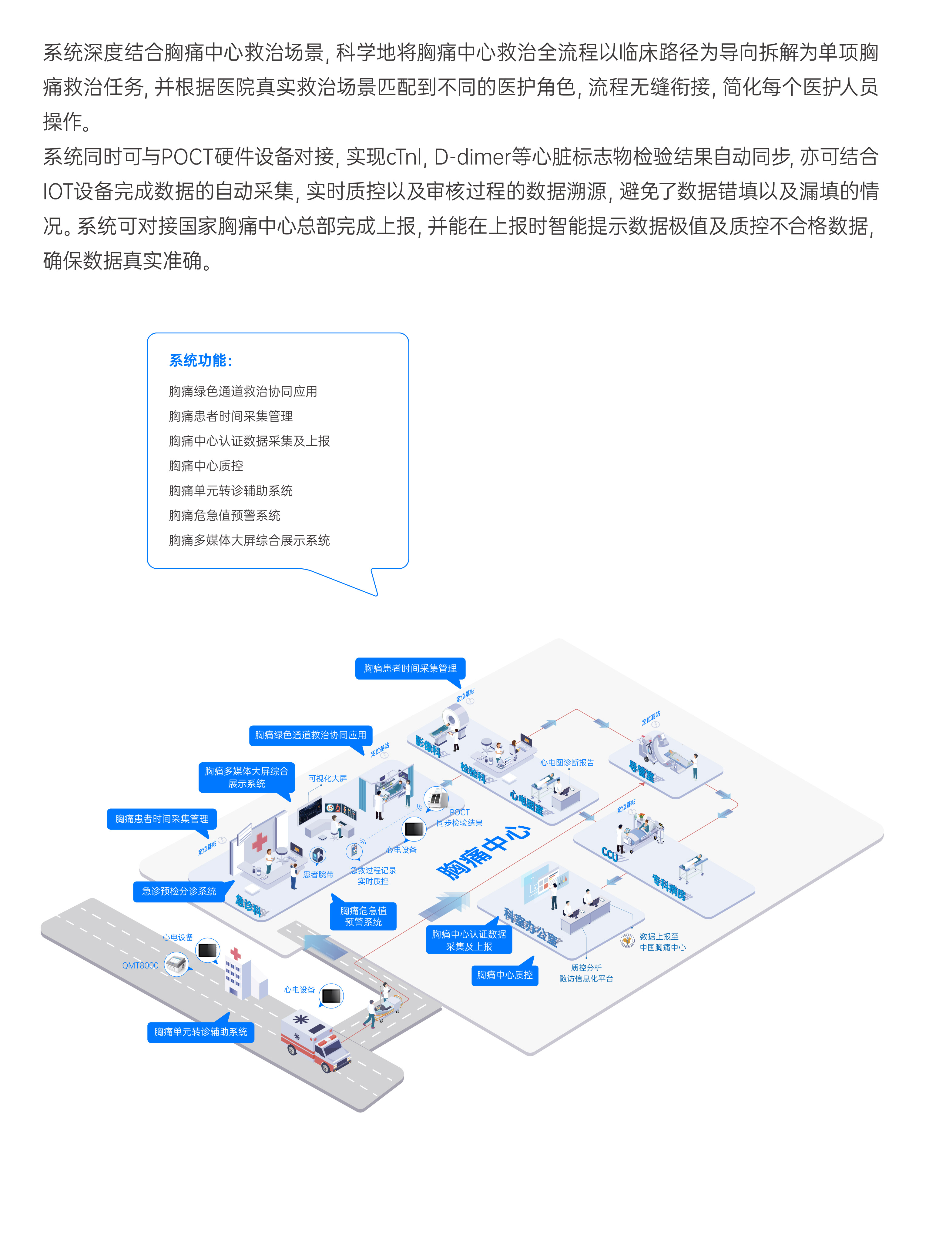 系統(tǒng)同時可與POCT硬件設備對接,實現(xiàn)cTnl,D-dimer等心臟標志物檢驗結果自動同步,亦可結合IOT設備完成數(shù)據(jù)的自動采集,實時質控以及審核過程的數(shù)據(jù)溯源,避免了數(shù)據(jù)錯填以及漏填的情況。系統(tǒng)可對接國家胸痛中心總部完成上報,并能在上報時智能提示數(shù)據(jù)極值及質控不合格數(shù)據(jù),確保數(shù)據(jù)真實準確。" />